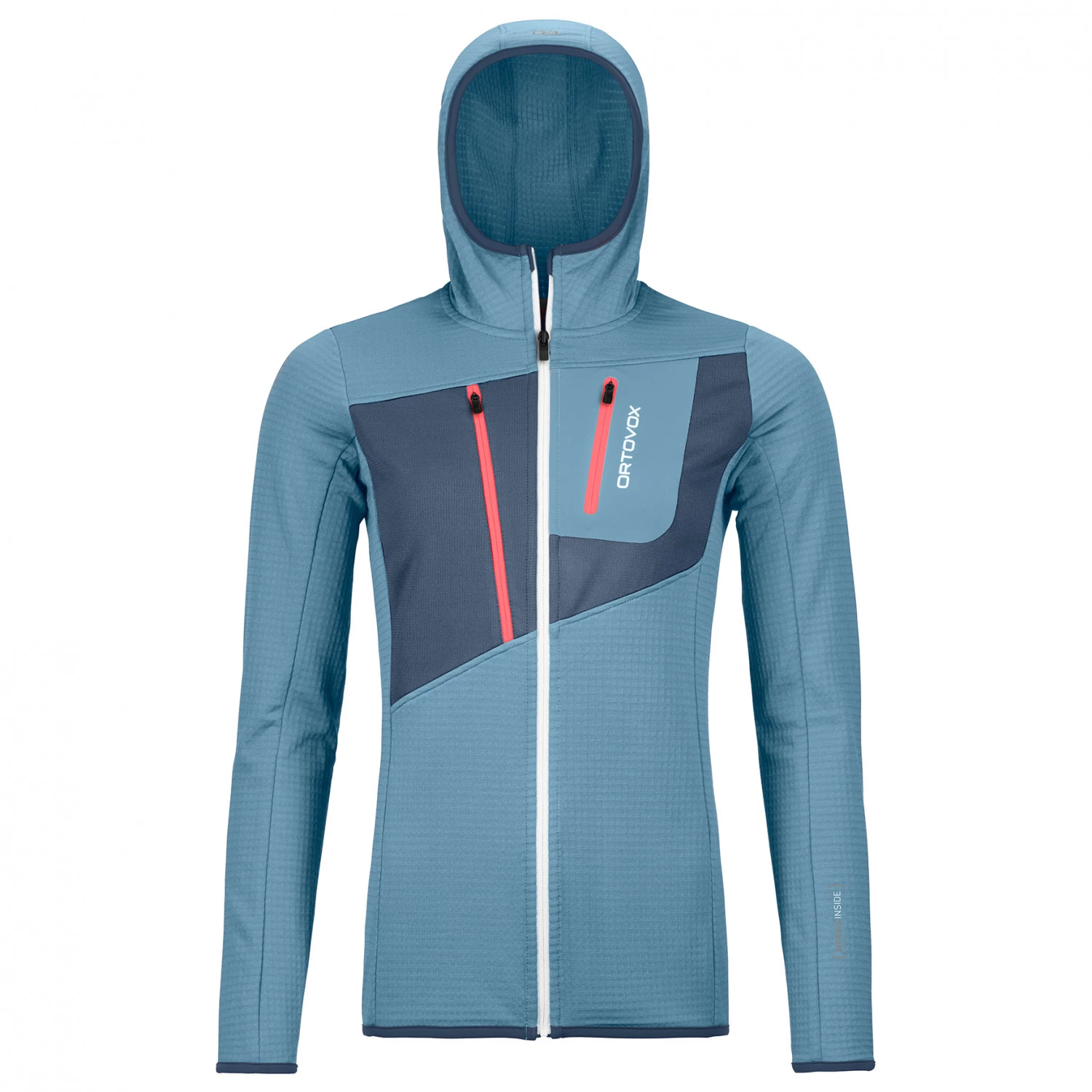 L’accompagnement idéal en montagne : la Women’s Fleece Grid Hoody d’Ortovox ! Grâce à la structure en canaux à l’intérieur, la veste polaire est légère, mais peut en même temps stocker de l’air et de la chaleur grâce aux poches d’air. Elle marque des points avec sa respirabilité et elle sèche rapidement. L’insert Fleece Light dans la zone de la poitrine offre une protection légère contre le vent. Quand l’activité devient plus intensive, la composition des matériaux n’offre pas seulement un agréable stretch, mais la structure en canaux veille également à une ventilation interne. La laine mérinos apporte une bonne dose de confort.
